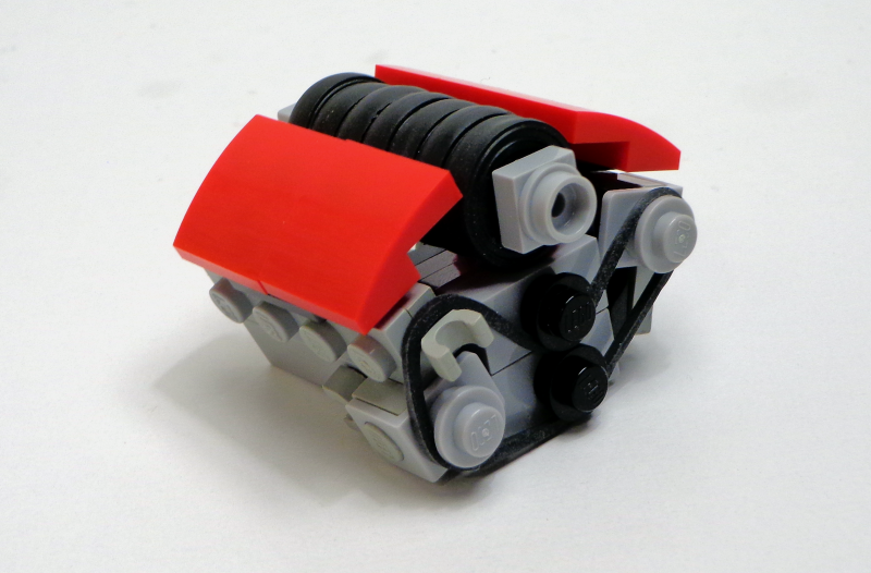Turbos are exhaust driven, usually to the side of the motor. Using lego to showcase different engine configurations. Use a few different colors to make it more interesting.